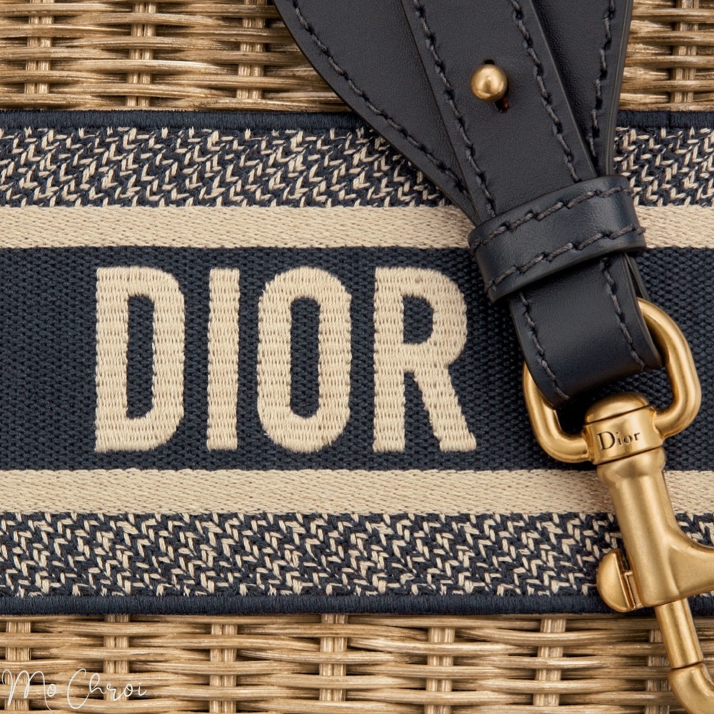 The new Dior Wicker basket bag is hand-knitted from natural wickers for a timeless design. The blue Dior Oblique Jacquard inner bag, zip pockets and drawstring embody the Maison’s classic savoir-faire. Inspired by the iconic Dior Book Tote, the bag features a band embroidered with the Christian Dior signature. The wide embroidered shoulder strap can also be used as a shoulder bag or crossbody bag.