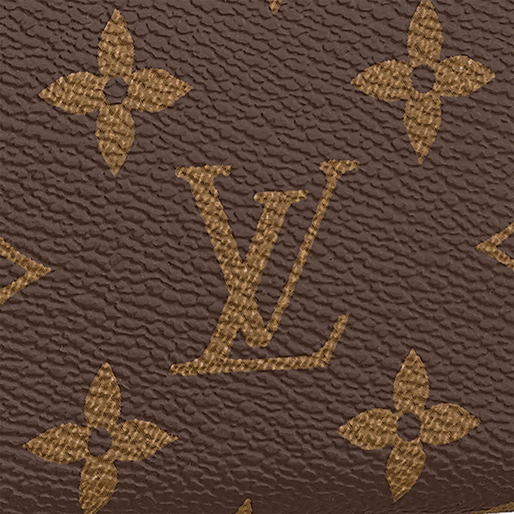 A smart and functional monogrammed canvas wallet “Portefeuil Clemence” that is compact but has excellent storage capacity. The brightly colored lining and leather zipper pulls give it a playful feminine feel.