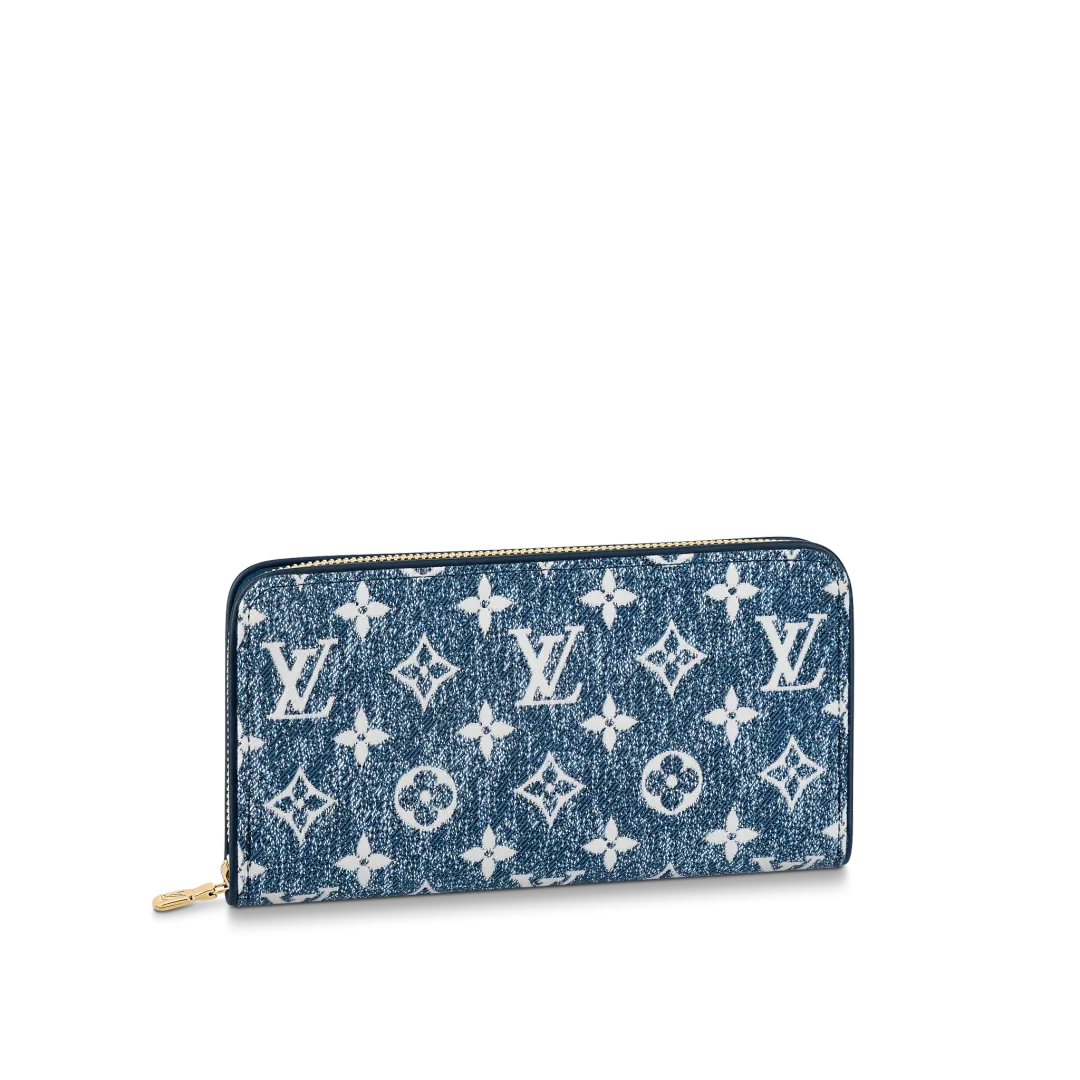 • The Zippy Wallet is made of monogrammed jacquard denim – a textile that expresses Louis Vuitton’s signature monogram pattern with a stonewash-like texture. Cowhide leather trimmings complete the iconic design with round zipper closure, as the name suggests. The interior is also attractive with three large compartments, multiple pockets and 12 card slots.